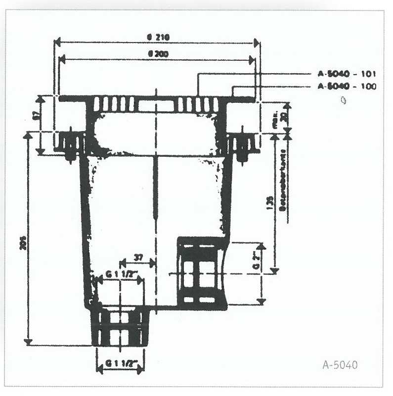 Bodenablauf rund für Betonbecken mit Gitterblende in Kunststoff