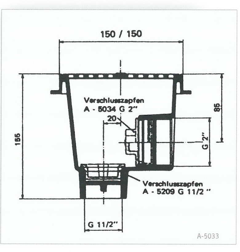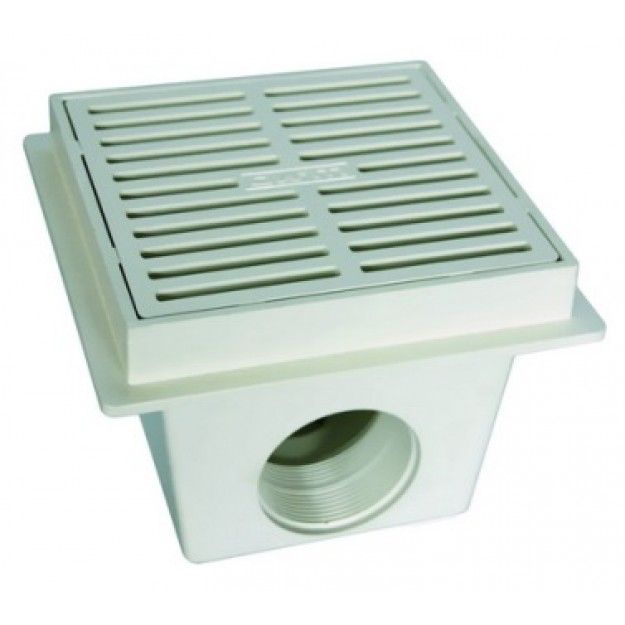 Bodenablauf quadratisch für Betonbecken mit Gitter in Kunststoff