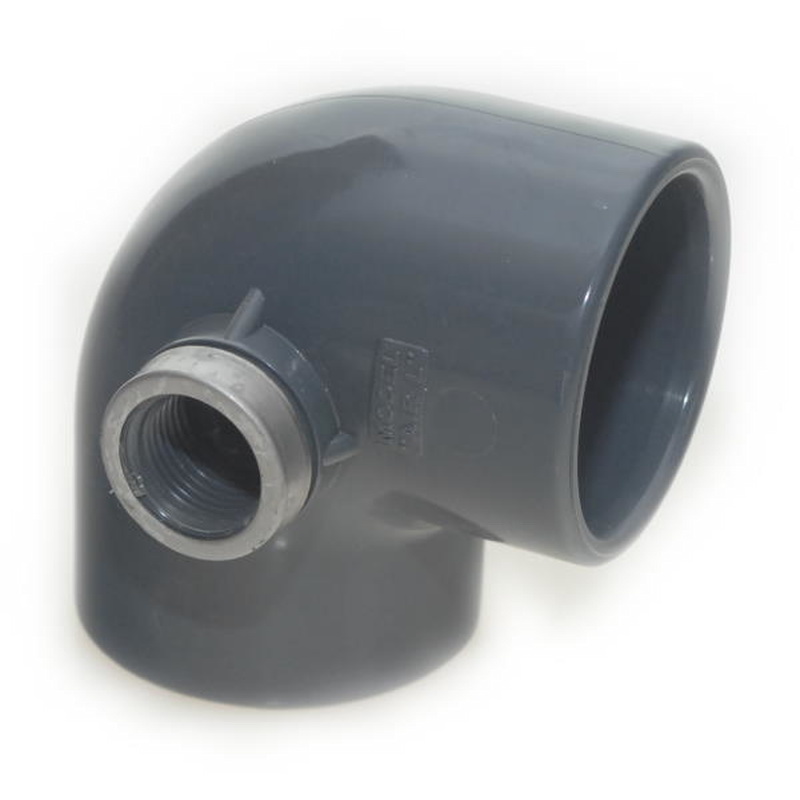 PVC-Winkel 90º mit Entleerung seitlich, Klebemuffe